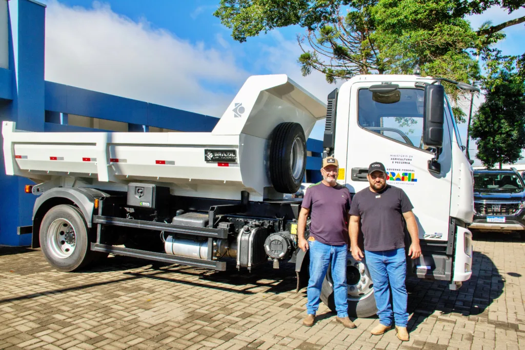 O caminhão caçamba, ano 2024/2025, movido a diesel, com potência de 190 cavalos, foi adquirido pelo valor de R$ 465 mil, por meio do Ministério da Agricultura e Pecuária (MAPA), conforme o convênio TransfereGov nº 969342/2024, e será destinado ao apoio às ações de desenvolvimento do setor agropecuário do município.