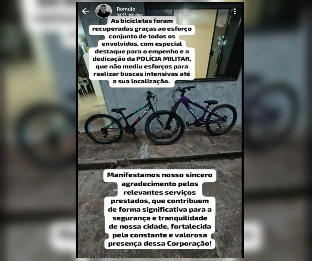 A vítima, morador de Rosário do Ivaí, fez questão de reconhecer o empenho da corporação. Em sua mensagem, ele destacou que as bicicletas só foram recuperadas graças ao esforço conjunto de todos os envolvidos, ressaltando de forma especial o empenho, a dedicação e a persistência da Polícia Militar, que realizou buscas intensivas até a localização dos objetos.