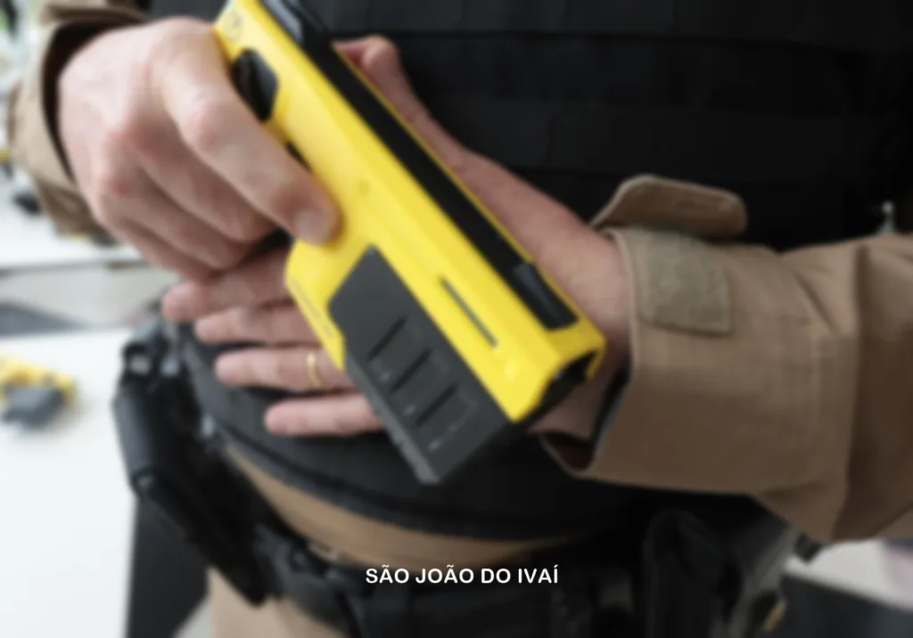 Em determinado momento, o acusado avançou rapidamente em direção à equipe policial, representando risco iminente. Conforme as diretrizes da Polícia Militar do Paraná sobre o uso seletivo e diferenciado da força, um dos policiais, habilitado no uso do equipamento, efetuou dois disparos de taser para conter o agressor.
