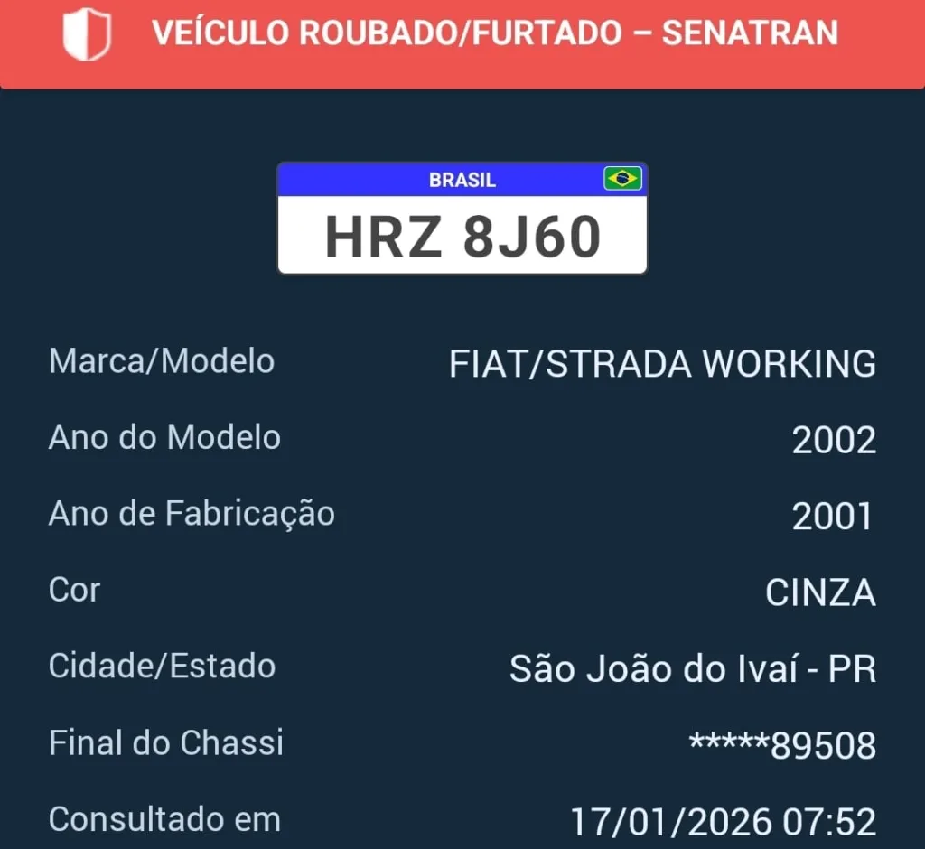 Segundo o relato, após conversar com moradores da região, o casal tomou conhecimento de que a caminhonete teria sido vista por volta das 20h, nas proximidades da saída para o município de São João do Ivaí. Conforme as informações, o veículo trafegava em alta velocidade e realizando manobras perigosas, o que chamou a atenção de populares.