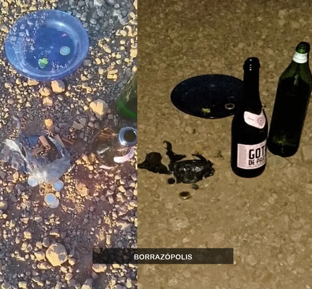 Na ocasião, foram encontrados recipientes com bebidas alcoólicas, charutos, copos com líquidos, pães e galinhas mortas em túmulos em construção, levantando questionamentos sobre possível dano ao patrimônio, crime ambiental e desrespeito às famílias.