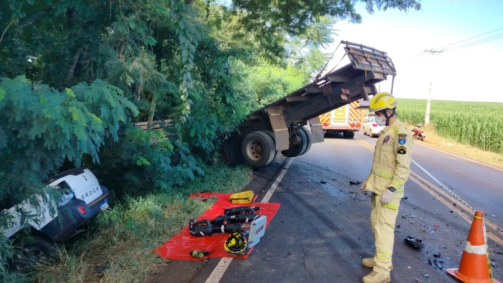 De acordo com as primeiras informações, a colisão envolveu uma caminhonete Renault Oroch, ano 2023, modelo 2024, emplacada na cidade de Londrina, e um caminhão. O motorista do veículo de carga é morador de Pitanga.