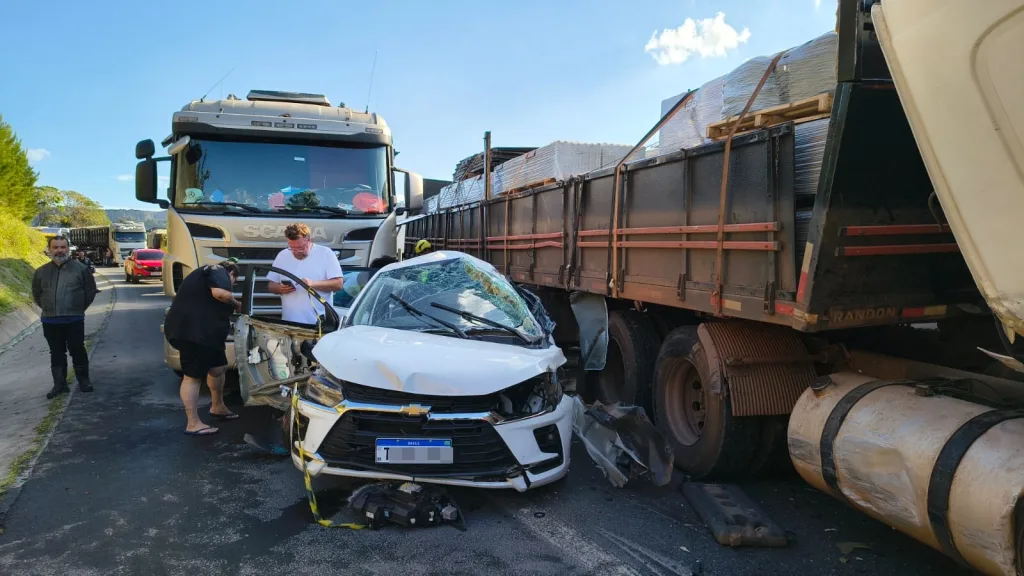 Entre os veículos envolvidos, também foram identificados uma Fiat Fiorino branca, com placas de Belo Horizonte (MG), um semirreboque Randon, com placas de Porto Velho (RO), e uma Scania vermelha, de São Jorge do Oeste. A pista ficou totalmente interditada no sentido norte, sem previsão de liberação.