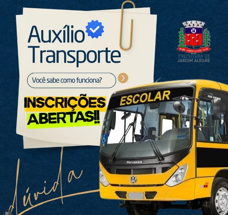 A Prefeitura de Jardim Alegre informou que já estão abertas as inscrições para o Auxílio Transporte Universitário 2026. O benefício é voltado a estudantes residentes no município que estejam regularmente matriculados no primeiro semestre de 2026 e que frequentem cursos de Graduação ou Educação Profissional Tecnológica fora da cidade.