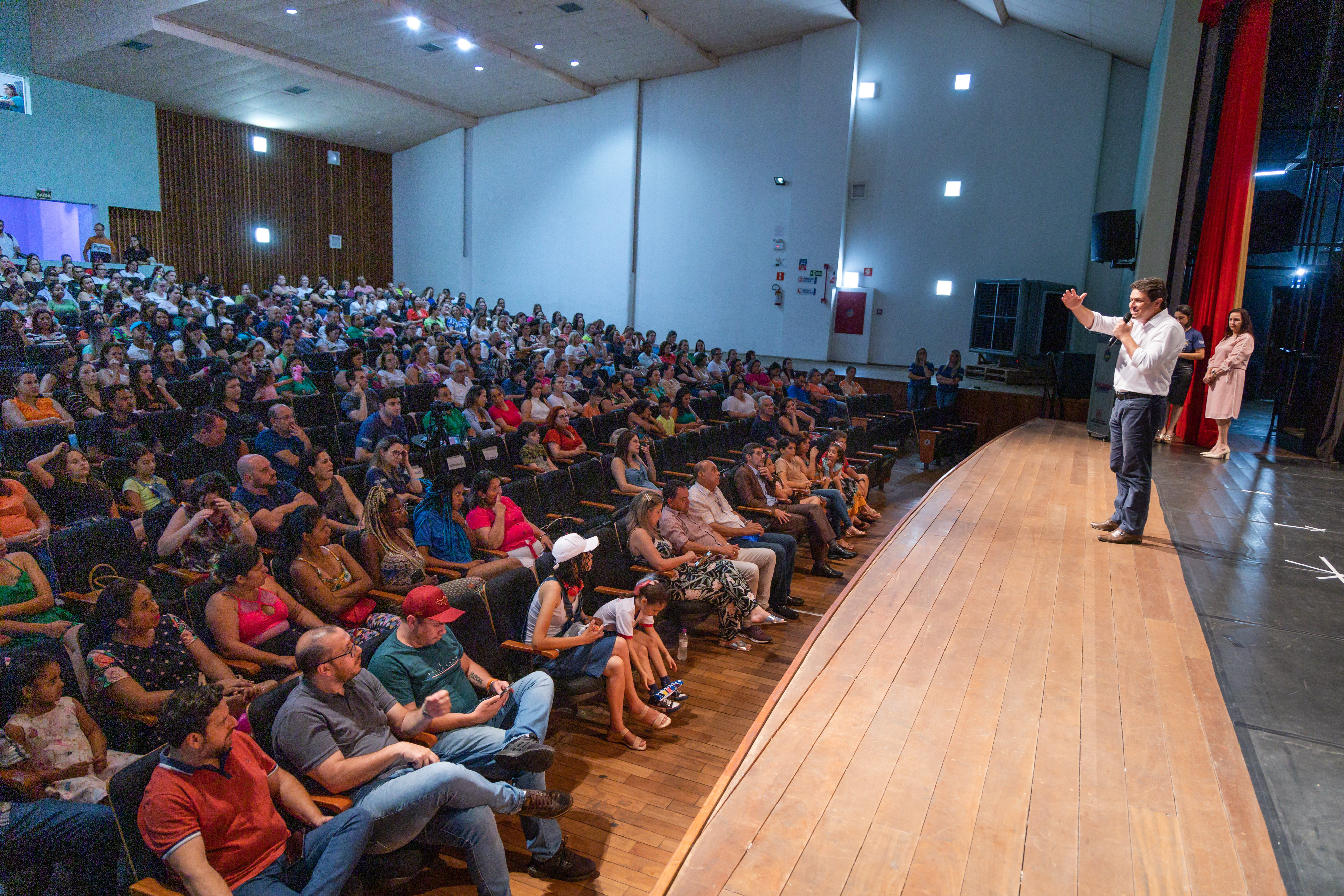 A Autarquia Municipal de Educação realizou a oitava edição da Escola de Pais. Na noite de ontem (21/11), no Centro Cultural Fênix, o professor da Universidade Estadual de Campinas (Unicamp), Dr. José Renato Polli, conversou com as famílias dos estudantes apucaranenses sobre a importância da interação entre eles e os professores para a promoção de uma educação verdadeiramente inclusiva. O projeto da Escola de Pais foi implantado na rede municipal de educação no contexto pós-pandemia de Covid-19. “Nós sempre incentivamos a participação dos pais na vida escolar dos filhos, pois entendemos que isso é muito importante para o adequado desenvolvimento das crianças. A pandemia nos mostrou que estávamos no caminho certo e que poderíamos reforçar ainda mais esse elo. A Escola de Pais foi planejada como um momento em que compartilhamos informações e conhecimentos relevantes sobre educação e parentalidade às famílias dos nossos alunos. Além disso, nós também instituímos o projeto Olhar Acolhedor, por meio do qual disponibilizamos atendimento psicológico aos professores, servidores e estudantes”, detalhou a secretária de educação, Marli Fernandes. Durante a oitava edição da Escola de Pais, o prefeito Junior da Femac repassou cópias do certificado do Prêmio Band Cidades Excelentes aos diretores dos 24 centros infantis (CMEIs) e das 36 escolas da rede municipal de Apucarana. “Após analisar 67 índices, distribuídos em seis pilares, o Instituto Áquila apontou que somos o município que oferta a melhor educação às suas crianças, entre todas as cidades com mais de cem mil habitantes do Paraná. E ainda estamos concorrendo na fase nacional da premiação. Esse certificado foi conquistado coletivamente pela secretária Marli Fernandes, os mil e quinhentos professores e servidores, os 12,5 mil estudantes e as famílias da rede municipal de Apucarana. Por isso, eu faço questão que ele fique estampado na entrada das nossas unidades de ensino,” afirmou. O doutor em educação José Renato Polli parabenizou o prefeito Junior da Femac e a secretária Marli Fernandes pelo trabalho desenvolvido. “Por tudo que ouvi e vi desde que cheguei aqui, eu percebo que vocês estão promovendo uma educação humanizadora na rede municipal de Apucarana. O acolhimento é a porta de entrada, pois não se faz educação sem que a gente tenha essa perspectiva de acolher o outro. O aprendizado é um processo contínuo na vida do ser humano e todas as crianças, inclusive aquelas com deficiências, têm potencial de conhecimento,” disse. Acompanharam também a palestra ontem no Centro Cultural Fênix, os secretários municipais Gerson Canuto (Agricultura) e Jossuela Pirelli (Assistência Social), o diretor-presidente do Instituto de Desenvolvimento, Pesquisa e Planejamento de Apucarana (Idepplan), Ivanildo da Silva, o diretor-presidente da Autarquia de Serviços Funerários, José Airton Deco de Araújo, e os superintendentes Flávio Damin (Meio Ambiente) e Emerson Garcia (Assistência Social). A oitava edição da Escola de Pais foi transmitida ao vivo pelo canal da Autarquia Municipal de Educação na plataforma YouTube. O vídeo segue disponível no link: https://youtube.com/live/UwQcAwHvF1k?feature=share